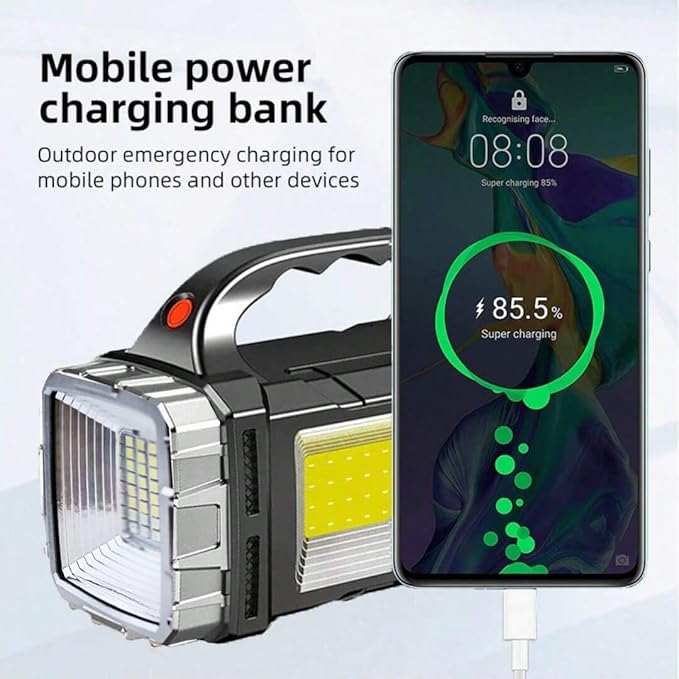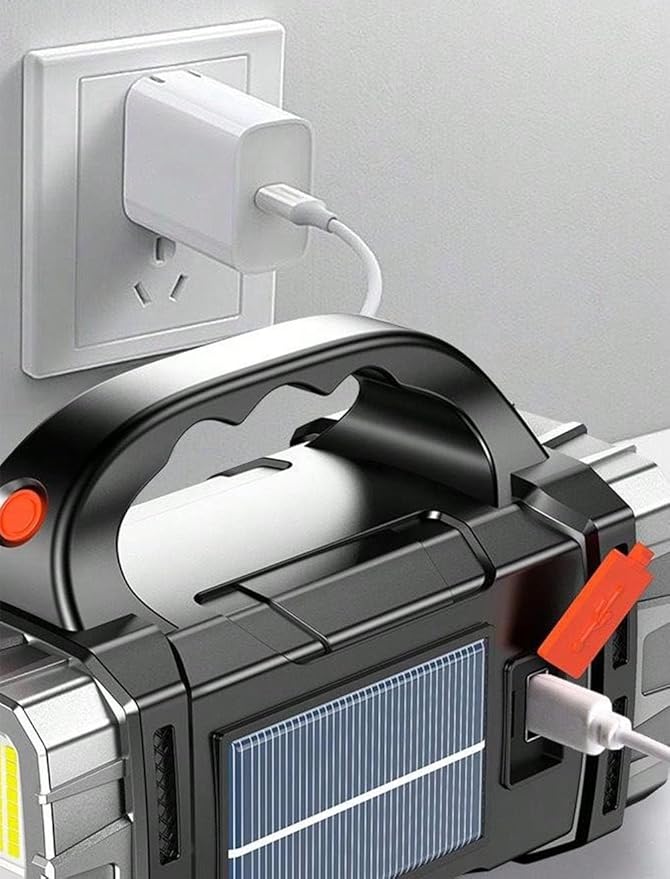 - Easy to Carry&Two Ways to Charging. Handheld handle with ergonomic design,comfortable handle. The ultra-light weight for a long time without getting tired. Lightweight and comfortable , free your hands. Solar Charge & USB Charge: Two charging modes make it easier and faster for you to use this solar flashlight. You can charge it when you are outdoors by putting it in a place where there is even only weak sunlight. And indoors, you can charge it by connecting it to your computer, car and power outlet via USB.