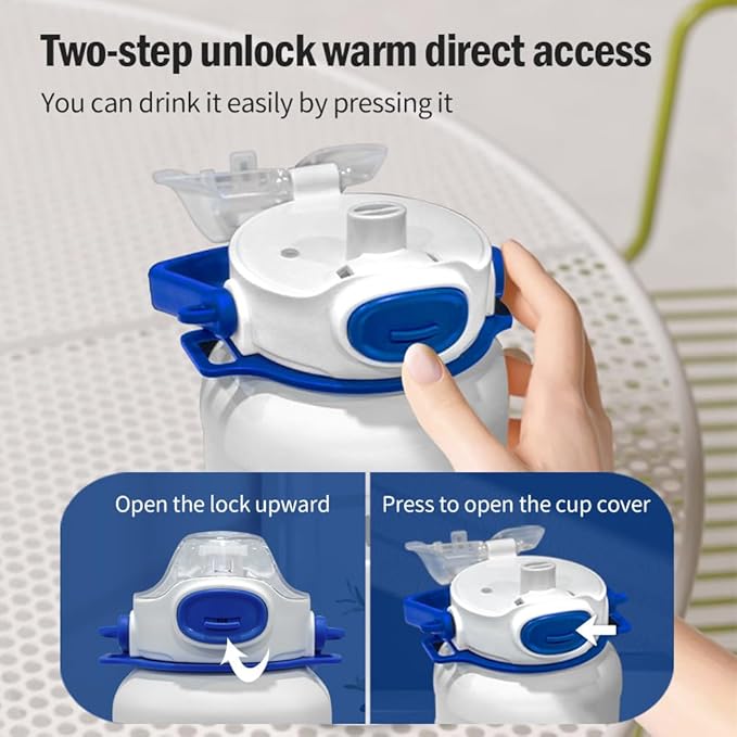 - Multi-Functional Leak-Proof Lid Design:Features a one-touch push-button for easy opening, built-in straw for convenience, and a secure locking mechanism with a rubber seal to prevent leaks, even when shaken or turned upside down