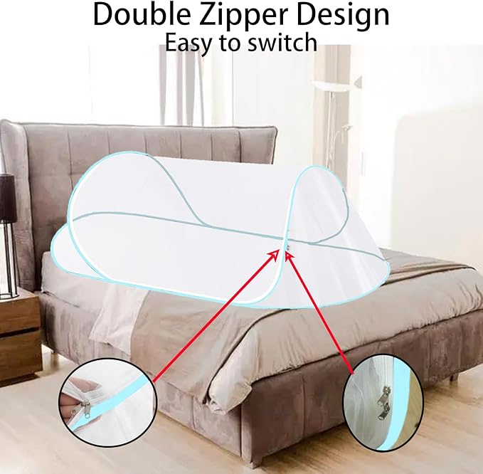- Double Zipper design: The zipper design ensures that there are no gaps for mosquitoes to enter. The Double Zipper design makes it easier for users to enter or exit the mosquito net