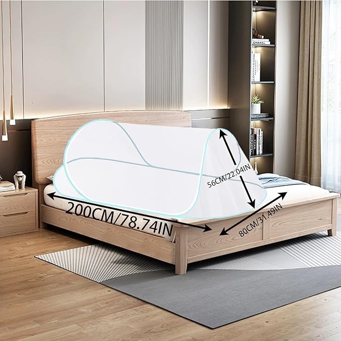 - Unique and innovative design: CMING Mosquito net size is L78.74 * W31.49 * H22.04(200 * 80* 56 cm), suitable for a single adult. Also,The mosquito nets are big enough for small children to play and sleep. Keeping you or your family a peaceful and relaxing night's sleep