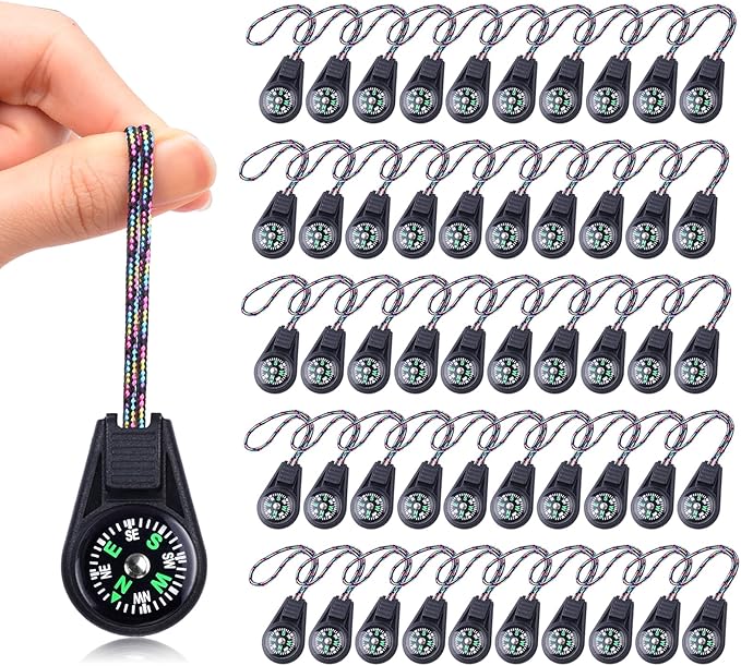 - Colorful Mini Compass Bulk Pack: Our 50-piece mini compass bulk set comes black colors, each with a 20mm diameter and a sturdy 70mm strap. These small compasses are perfect for kids aged 5-12 as a fun and educational addition to goodie bags, and easy to find in emergencies. Ideal for scout packs and outdoor activities, these compasses serve well as Compass party favors.