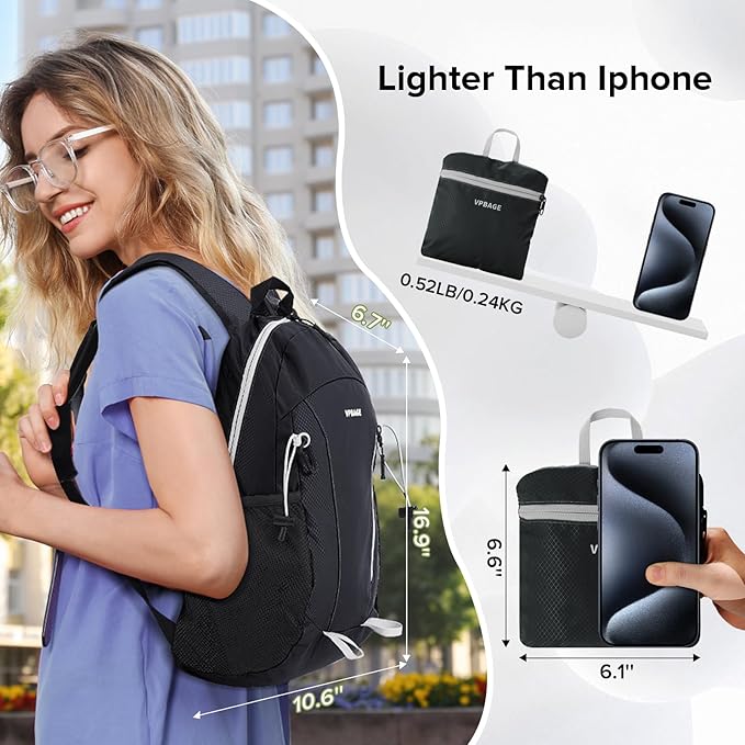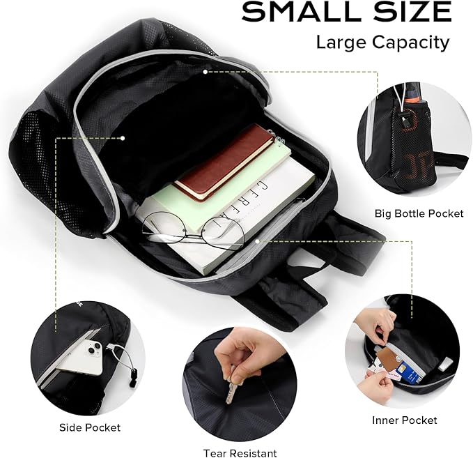 • Foldable into a Pouch and Compact : When not in use, hikers can easily fold the small backpack into its inner pocket, as small as a palm, which can be easily packed into your bag or suitcase, providing additional storage space to carry extra gear or souvenirs