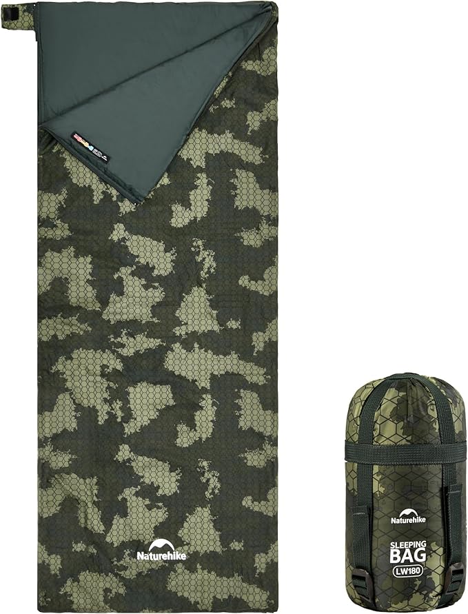 Naturehike Ultralight Sleeping Bag - Envelope Lightweight Portable, Waterproof, Comfort with Compression Sack - Great for 3 Season Traveling, Camping, Hiking, Jungle Green