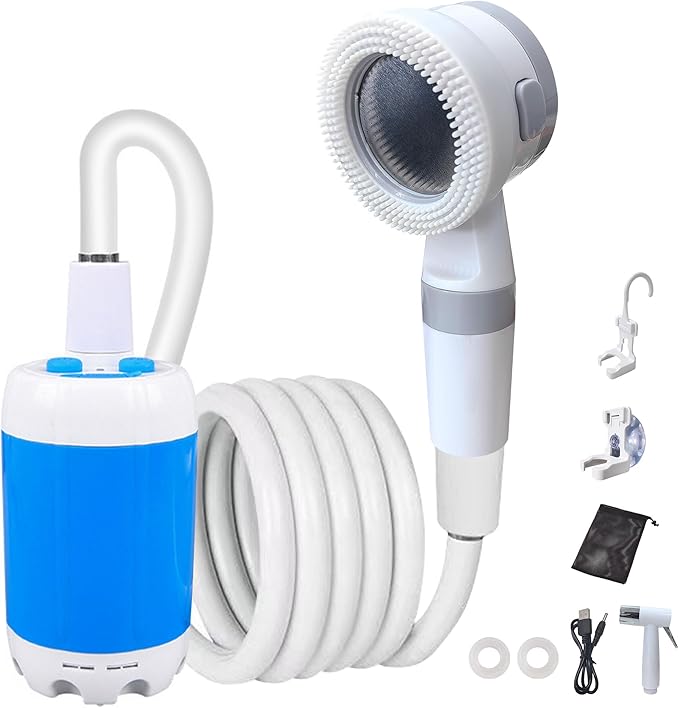 - 【Flexible Applications】Equipped with suction cups and hooks, this shower is perfect for outdoor use during travel or hiking. It’s also great for washing vehicles and bathing pets.