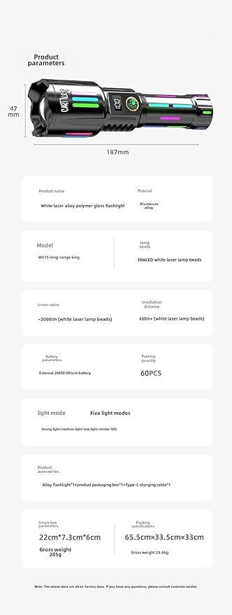 - 【FLASHLIGHT PACKAGE】: What you get: 1 x LED Flashlights High Lumens, 1 x 5000mAh Battery, 1 x Charging Cable and 1x Manual and 1 x Gift box. We have carefully checked all flashlight rechargeable before shipment and ensured that the products are working properly. Most importantly, we provide 7*24 hours customer service. If you have any questions, please to contact us.