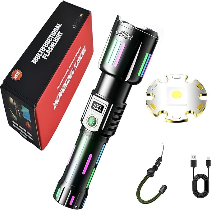 - Flashlights High Lumens:The bright flashlight is equipped with ultra-bright XHP99 LED chip, which is 40 times brighter than ordinary flashlights. The maximum beam distance can reach 3280 feet, which can clearly illuminate rooms and dark nights.