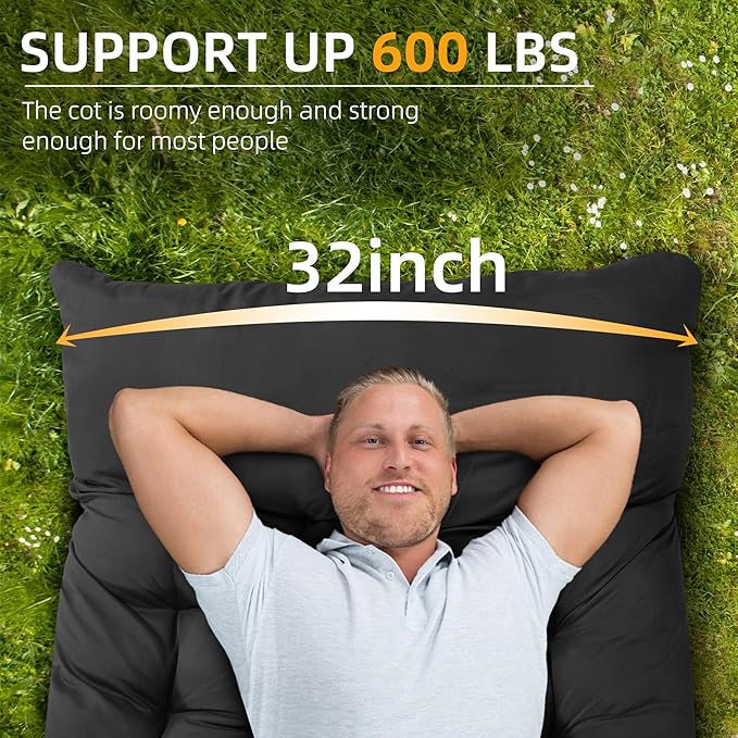 HABUTWAY Camping Cot with Mattress, 32" Extra Wide Camping Cots for Adults, Sleeping Cot for Adults Holds Up to 600LBS, Cots for Sleeping, Camp, Rv, Beach, Patio, Office Naps(Black)