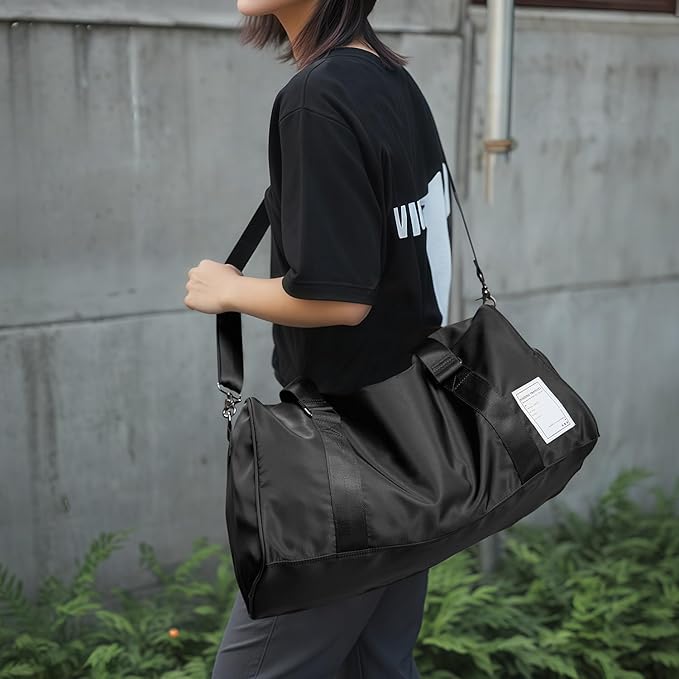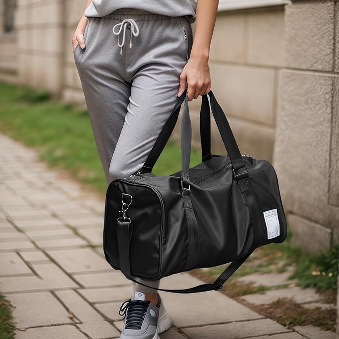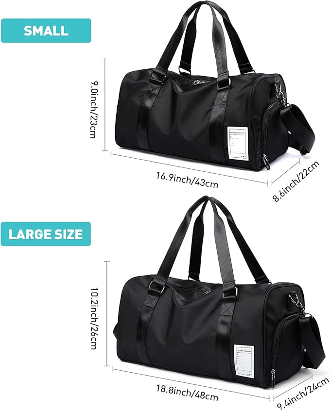 - [SIZE] Gym bag size: 48*24*26CM/18.9"*9.4"*10.4", weight: 0.72 kg/1.59 lbs.Gym bag comes with adjustable and detachable shoulder strap, there are multiple ways to carry it, you can crossbody gym bag, handheld gym bag, shoulder gym bag and so on. This sports gym bag is big enough for traveling or fitness use. The perfect carry-on bag for air travel and meets most international carry-on requirements.