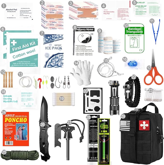 - ✅【All Weather, All Age, Multi-Purpose Survival Kit】From outdoor actions to general home and office needs, for the outdoorsman, preppers to boy scouts. With its comprehensive contents and coverage, you will be prepared anywhere you go.