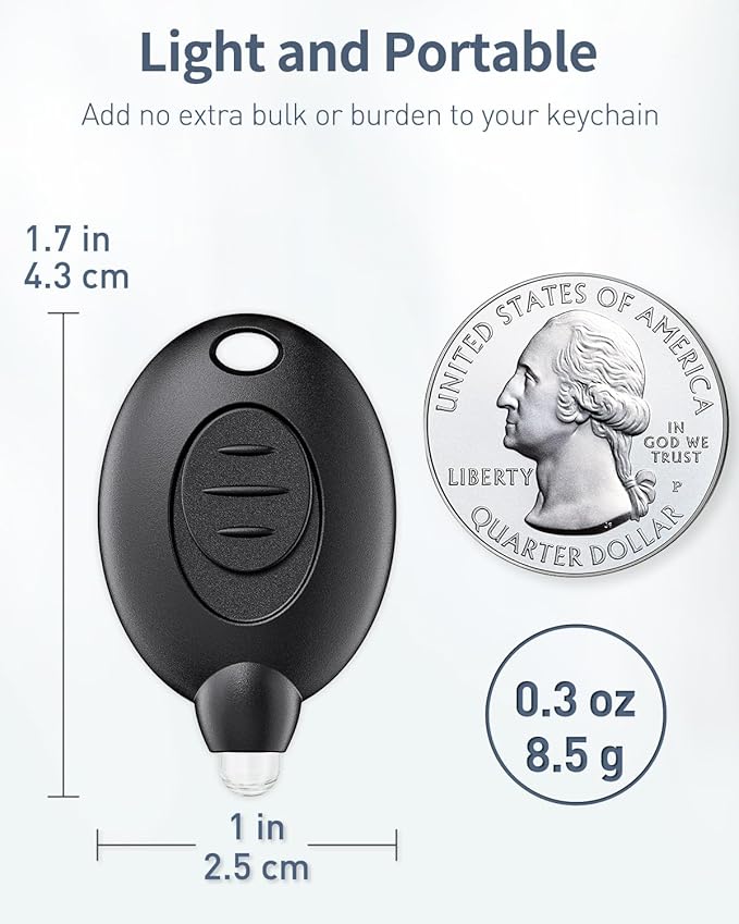 - Light & Portable: Size: 1.67" L x 1" W; Weight: 0.3 oz. Easily attach the mini LED light to your keychain with the split ring and carry it around wherever you like