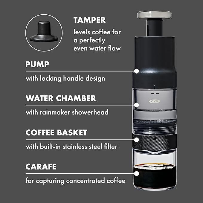- Why the OXO Rapid Brewer? — Brew exquisite concentrated coffee anywhere in 5 minutes or less with this lightweight, portable coffee maker. Not only is this the end of unsatisfactory coffee on-the-go, it’s the end of long lines and overpriced barista brew.