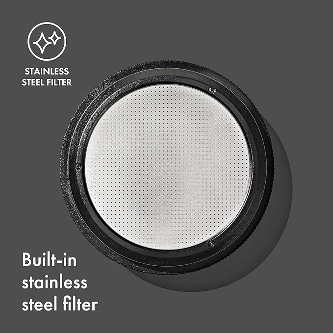- Built-in Stainless Steel Filter — No messy paper filters required.