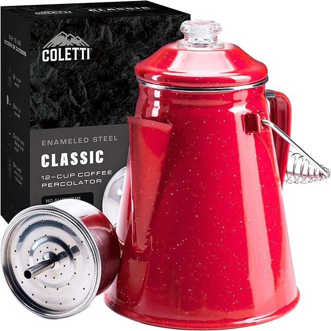 COLETTI Classic Percolator Coffee Pot — Camping Coffee Percolator, Campfire Coffee Pot – Camping Percolator for Groups — Brew for the Whole Campsite (Red, 12 Cup)