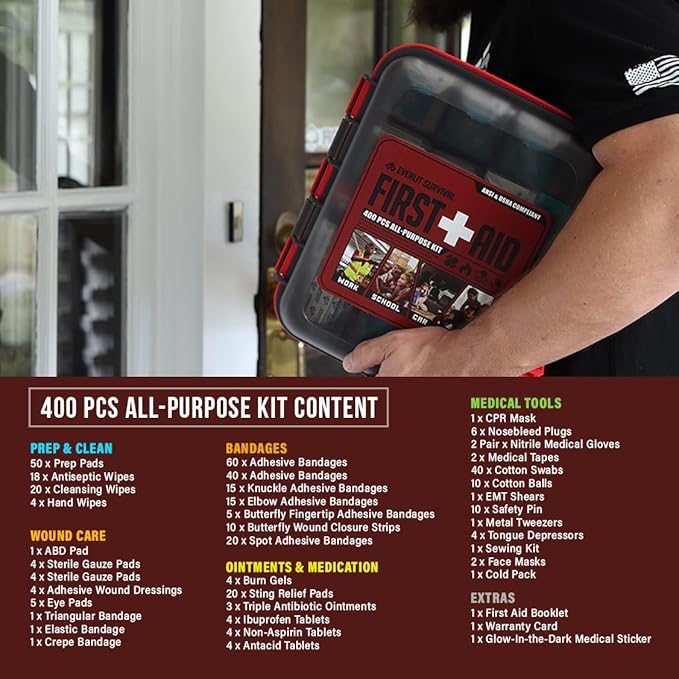 - ✅Exceeds OSHA/ANSI Standards: Contains 400 pieces of essential medical supplies, fully compliant with and exceeding ANSI Z308.1-2009 standards for workplaces with up to 100 people.