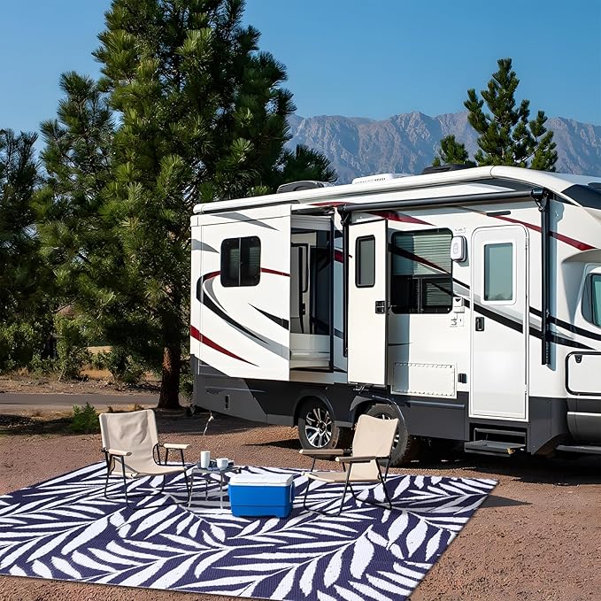 - Stylish & Functional: Our reversible camping rugs feature tropical leaf patterns on both sides, adding a touch of vibrant style to patios, RV's, porches, decks, backyards, and any outdoor space.