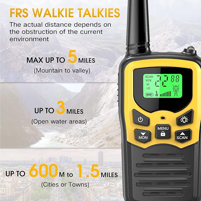 Walkie Talkies for Adults, MOICO Long Range Walkie Talkies for Adults with 22 FRS Channels,Family Walkie Talkie with LED Flashlight VOX LCD Display for Hiking Camping Trip (Yellow,2 Pack)