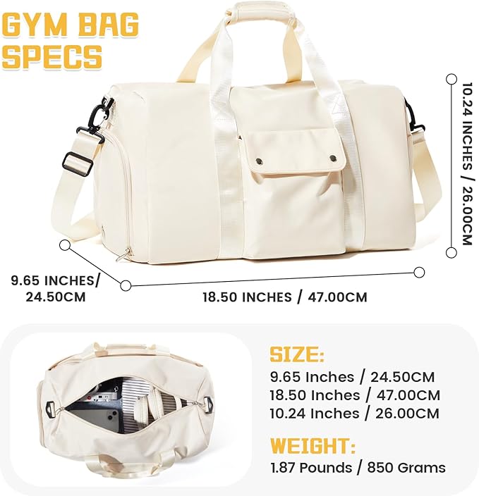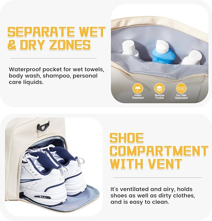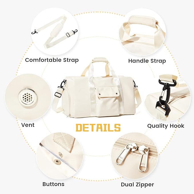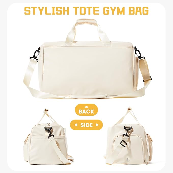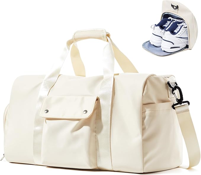 Travel Duffle Bag, Gym Bag with Shoe Compartment, Carry on Bags for Women Weekender Overnight Bag, Underseat Personal Item Bolso de Viaje - Beige