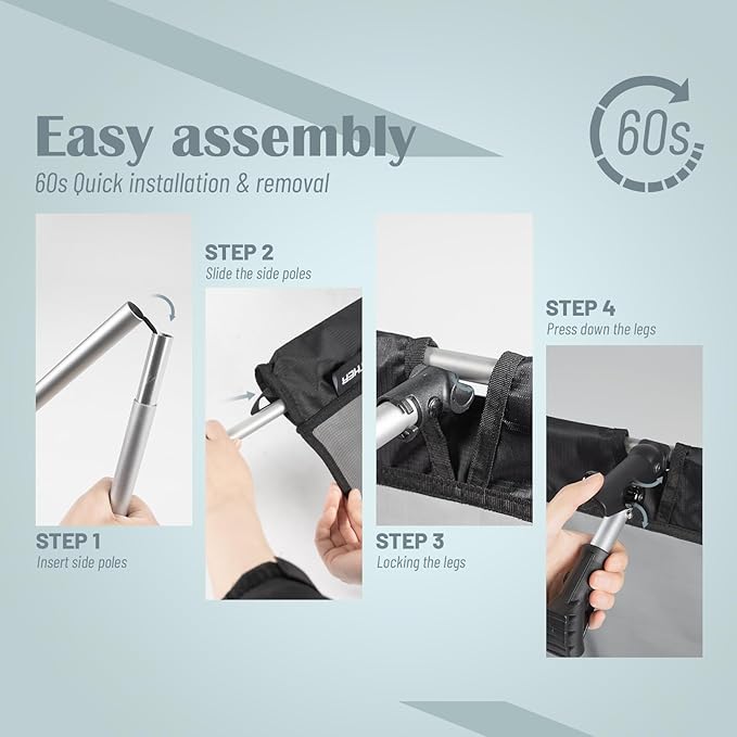 - LITTLE SIZE & LIGHTWEIGHT - This camping cot only weights 5 lb and Dimensions: 23" x 2.5" x 2.5" after being folded, saving your backpack space and energy.