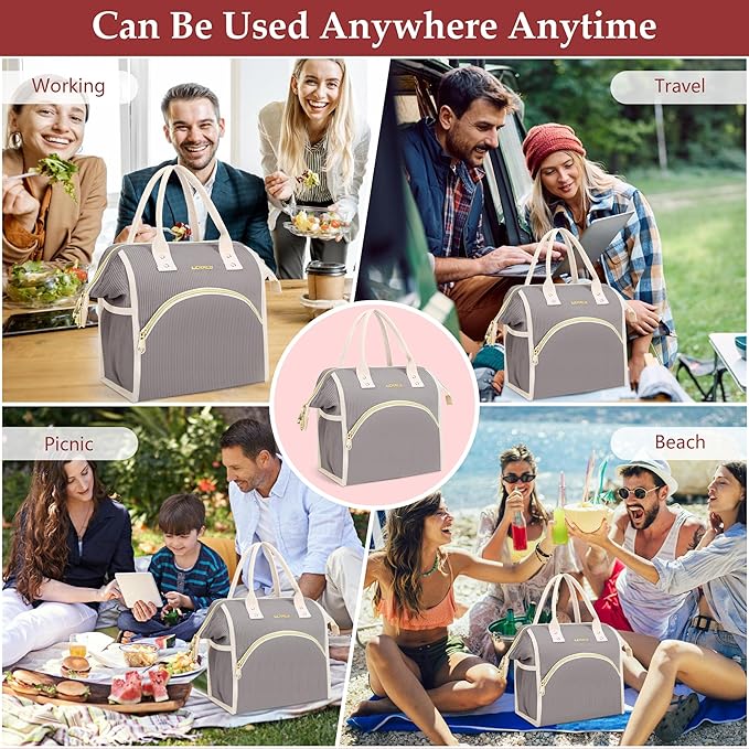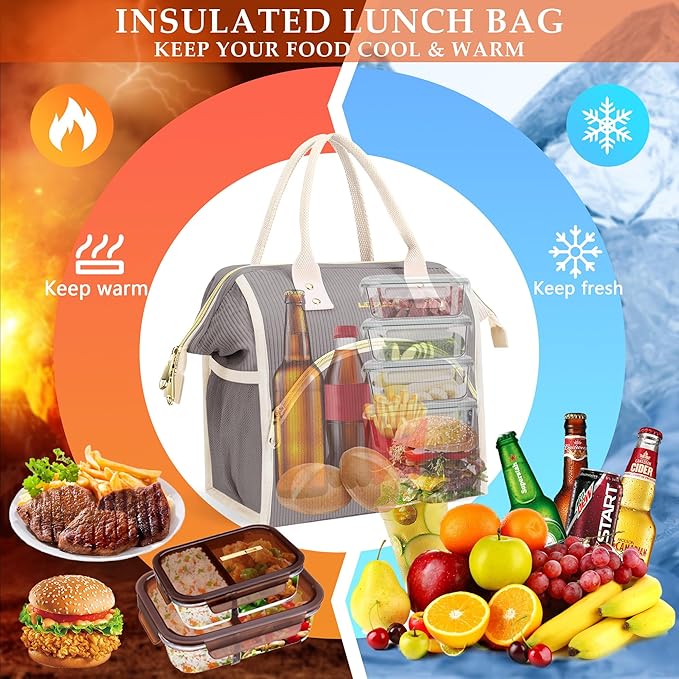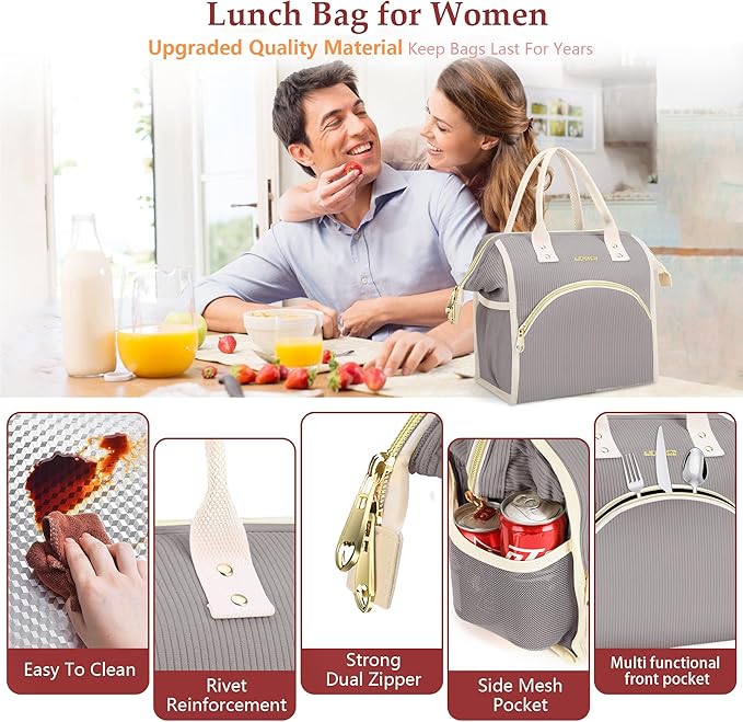 - 【Upgrade Aluminum Film】 Unlike others, our lunch bag women is made of aluminum film instead of EVA lining. The high-density three-layer fabric is lined with high-quality aluminum film material that can withstand high temperature and is not easy to wrinkle. High-quality aluminum film can keep food cool, warm and fresh for a long time. If you are looking for a lunch box that can withstand high temperature, it will impress you!