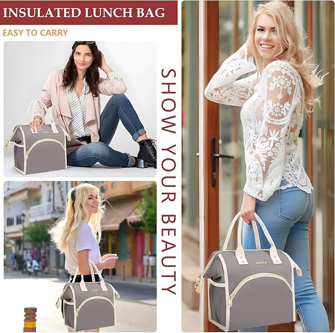 - 【Fashionable Lunch Bag】The uniquely designed lunch bag women, exquisite appearance and wrinkle-resistant shape make you say goodbye to the simple bag on the way to work and replace it with this practical and fashionable insulated lunch bag suitable for your elegant style. It can make your charm get the greatest praise! The fashionable style design makes the lunch bag is ideal to be used for men and women.