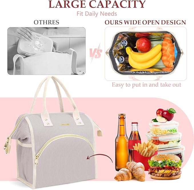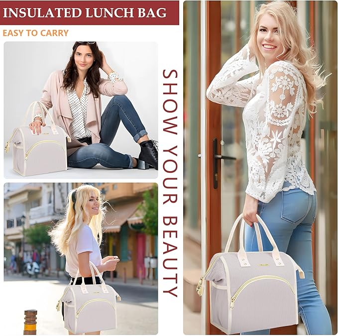 - 【Fashionable Lunch Bag】The uniquely designed lunch bag women, exquisite appearance and wrinkle-resistant shape make you say goodbye to the simple bag on the way to work and replace it with this practical and fashionable insulated lunch bag suitable for your elegant style. It can make your charm get the greatest praise! The fashionable style design makes the lunch bag is ideal to be used for men and women.