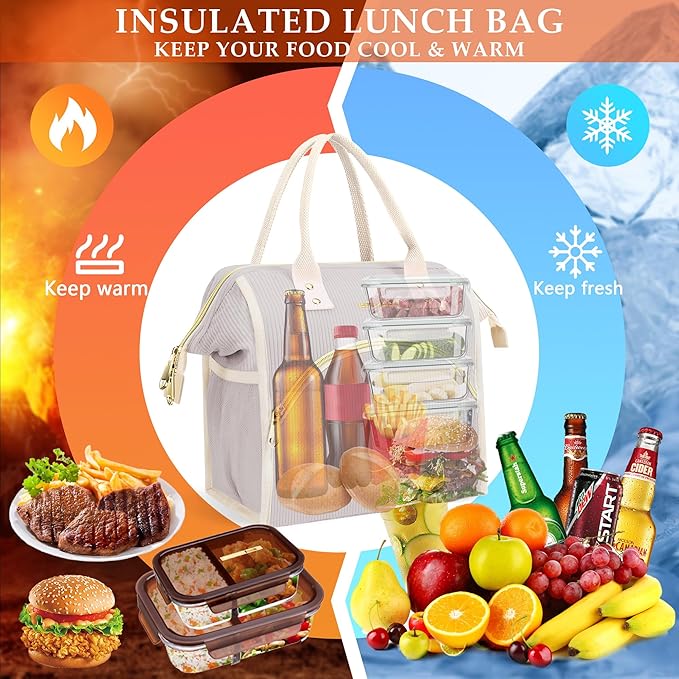 - 【Upgrade Aluminum Film】 Unlike others, our lunch bag women is made of aluminum film instead of EVA lining. The high-density three-layer fabric is lined with high-quality aluminum film material that can withstand high temperature and is not easy to wrinkle. High-quality aluminum film can keep food cool, warm and fresh for a long time. If you are looking for a lunch box that can withstand high temperature, it will impress you!