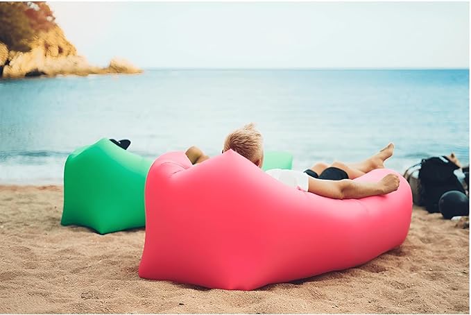 - 【EASY INFLATION】-No pump required. Simply open it up against the wind and whisk it through the air to fill the lounger. You may need to do this 3-4 times. Then roll the edges in, buckle and you are done! It can also be inflated with a fan. Once inflated, the blow up couch can be used as a beach lounge, beach chairs, camping chairs.