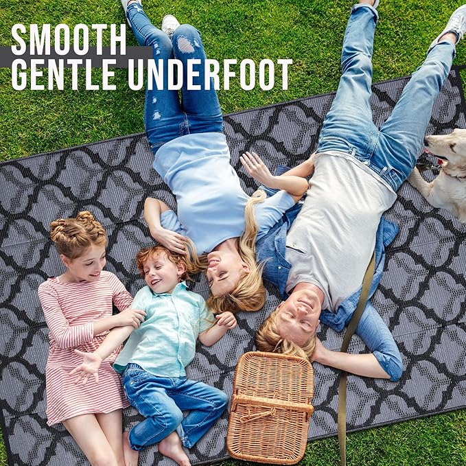 - Gentle Underfoot & Relaxing: The woven plastic straws create a soft, comfortable surface, perfect for barefoot walking and relaxation. Whether you're lounging on your patio or enjoying a picnic, this outdoor carpet for patio enhances your outdoor experience.