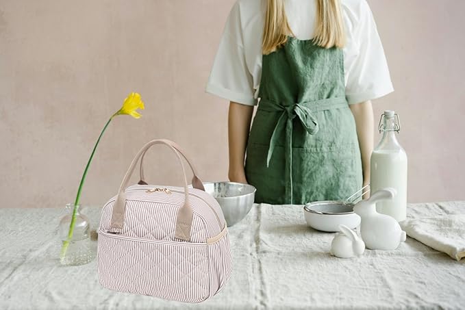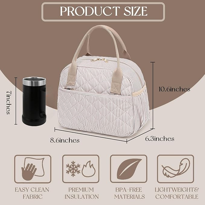 - 【FASHION ITEMS】The front of this lunchbox is designed with quilted. Simple and elegant design is a great item to pair with different clothes every day. It can blends in with your attire and isn’t too flashy or tacky. This bag looks good with purse and briefcase.