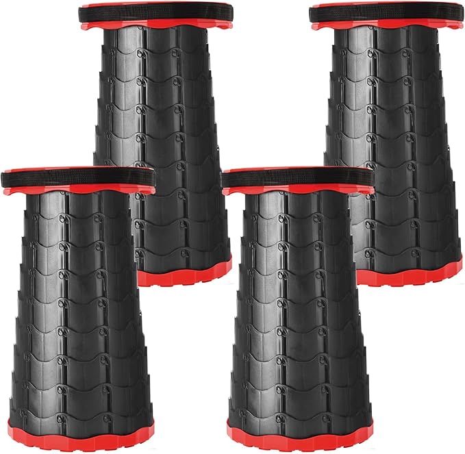 Upgraded Foldable Stool Thickened, Portable Collapsible Stool Retractable Stool for Fishing, Hiking, BBQ, Parties, Outdoor Activities (Red) (4)