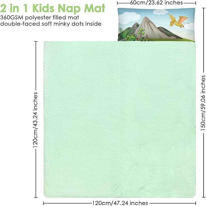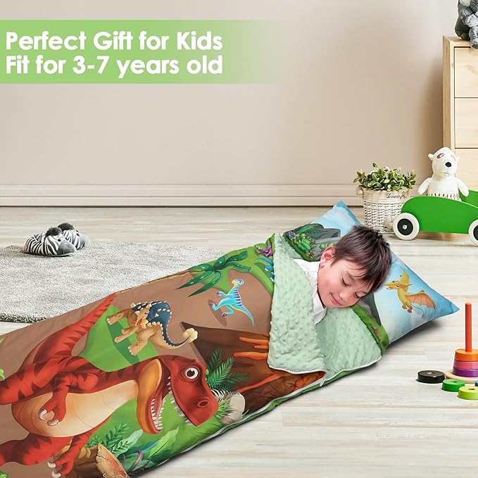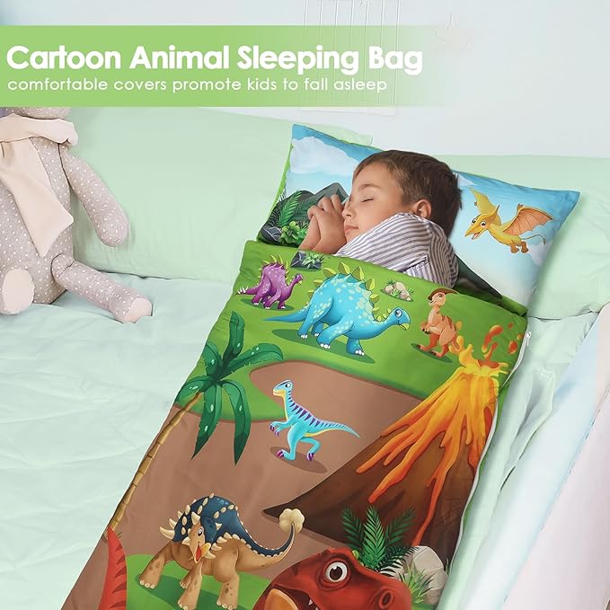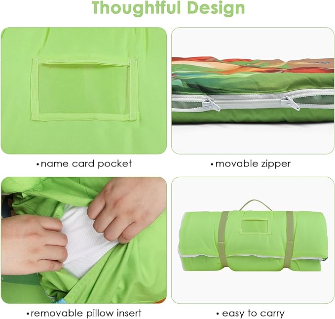 - Suitable Size and Thickness: Our child sleeping bag is 59 x 24 inches in full size; the mattress quilt is filled with 360gsm cotton and the cover is 80gsm.The pillow is 200g.Large size and thickened weight are very suitable for children's napping, bringing them an unforgettable sleeping experience.