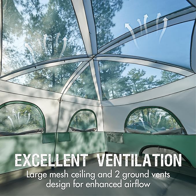 - AIRFLOW & VIEWS: Two D-shaped doors, six mesh windows, two ground vents, and a mesh ceiling provide excellent ventilation while minimizing condensation. Enjoy stunning views through the expansive mesh roof