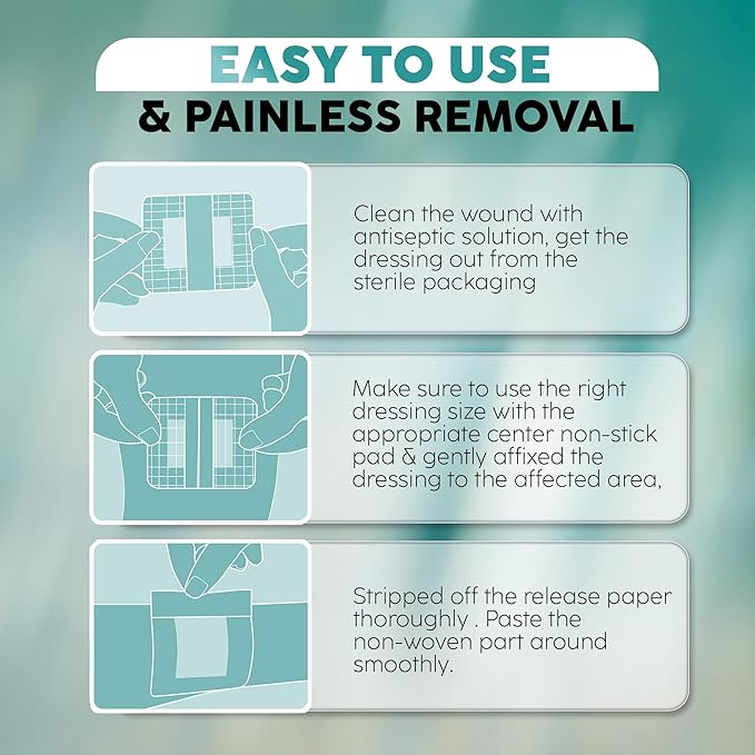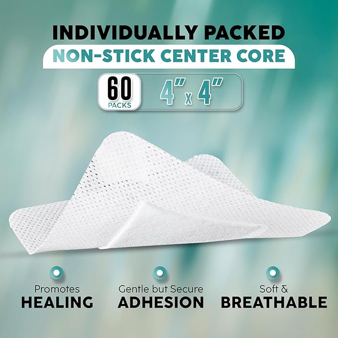 - 【Superior Comfort】 4"*4" Extra large bandages for wounds provide unparalleled comfort with a soft, non-stick, highly absorbent pad and adhesive breathable borders, ensuring painless changes and no skin irritation.