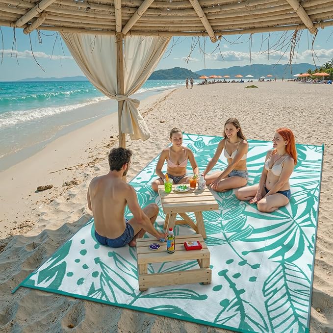- Versatile & Functional: These rugs are designed to complement any patio, balcony, porch, or garden decor while providing a comfortable outdoor space. Suitable for RV camping, picnics, beach outings, and poolside areas.