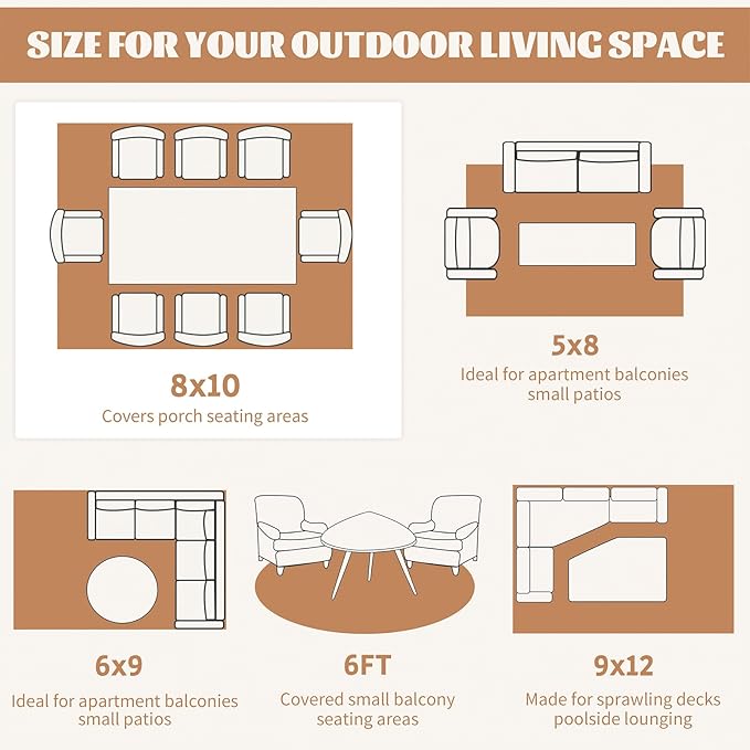 - Multi-Functional Use & Customer Service: This carpet which stands up to all seasons is a great option to create an outdoor oasis for patio, RV camping, porch, deck, playground, beach, balcony, picnic, gardens and garages.You and your family can walk, relax and play on the carpet without fear of allergies. If you got any problem with our product, please contact us immediately, we will offer you a satisfactory solution.