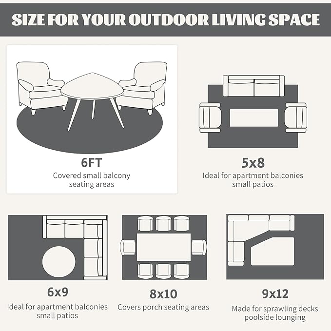 - Multi-Functional Use & Customer Service: This carpet which stands up to all seasons is a great option to create an outdoor oasis for patio, RV camping, porch, deck, playground, beach, balcony, picnic, gardens and garages.You and your family can walk, relax and play on the carpet without fear of allergies. If you got any problem with our product, please contact us immediately, we will offer you a satisfactory solution.