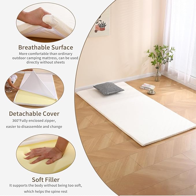 - 【Multiple Occasions】Whether you're camping, traveling by car, lounging outdoors, or setting up a guest bed at home, this camping foam mattress pad is a versatile solution for a wide range of uses. Ideal for camping trips, road travel, or accommodating overnight guests.