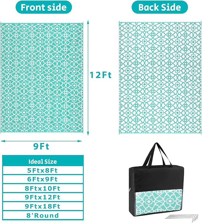 • Versatile Outdoor Carpet: The indoor outdoor plastic rugs have multiple choice in different colors(4'x6',5'x8',6'x9',8'x10',9'x12',9'x18',8'round), is ideal for a variety of indoor outdoor activities,like patio mat, deck rug, garden rug, beach mat, picnic mat, BBQ party mat, rv camping rug,pool rug,outdoor doormat,garage rug,front door mat,allowing you to have plenty of imaginable space for more fun.