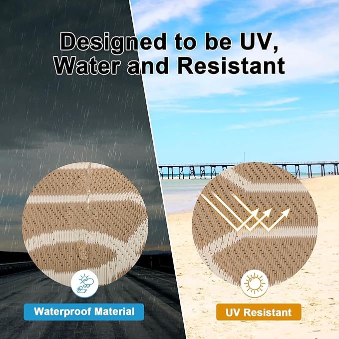 • Versatile Outdoor Carpet: The indoor outdoor plastic rugs have multiple choice in different colors(4'x6',5'x8',6'x9',8'x10',9'x12',9'x18',8'round), is ideal for a variety of indoor outdoor activities,like patio mat, deck rug, garden rug, beach mat, picnic mat, BBQ party mat, rv camping rug,pool rug,outdoor doormat,garage rug,front door mat,allowing you to have plenty of imaginable space for more fun.