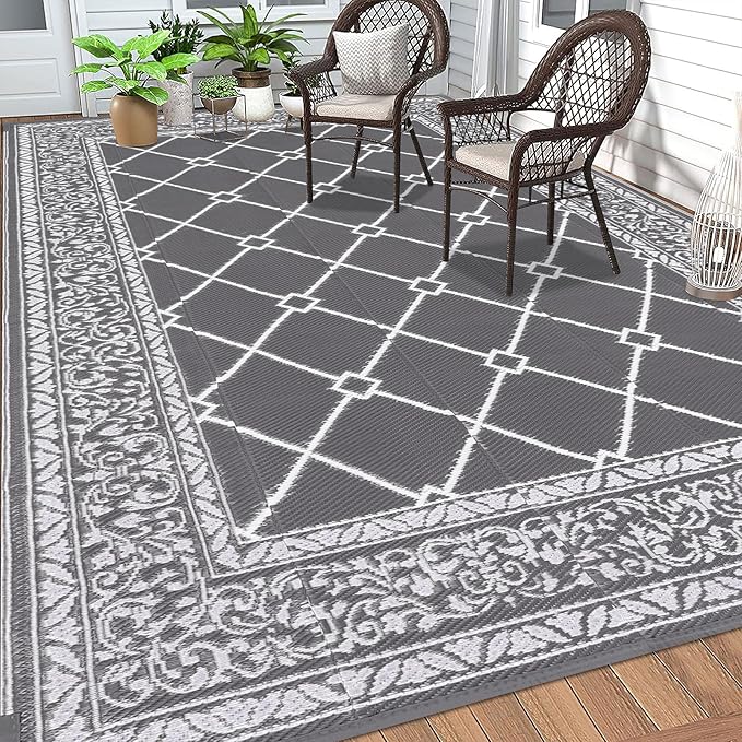 • Versatile Outdoor Carpet: The indoor outdoor plastic rugs have multiple choice in different colors(4'x6',5'x8',6'x9',8'x10',9'x12',9'x18',8'round), is ideal for a variety of indoor outdoor activities,like patio mat, deck rug, garden rug, beach mat, picnic mat, BBQ party mat, rv camping rug,pool rug,outdoor doormat,garage rug,front door mat,allowing you to have plenty of imaginable space for more fun.