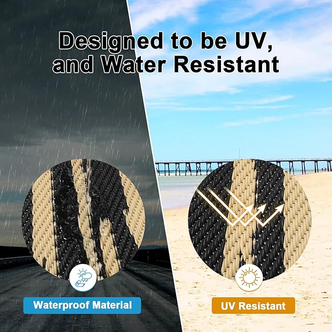 - Premium Outdoor Plastic Straw Rug: This reversible outdoor doormats are made from high quality recycled plastic straws and be woven tightly, durable enough, no fade, water resistant. It's soft and comfortable to walk on barefoot.Plus, the high-end UV coating and edge heat treatment technology prevent fading and sun damage without worrying about wear and tear.