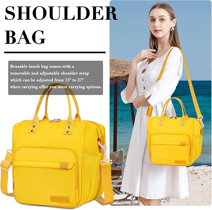 - PORTABLE & CONVENIENCE: TuErcao insulated lunch box features one reinforced handle on top for carrying as a handbag or tote bag. And comes with a detachable & adjustable shoulder strap which can be adjusted from 15" to 27" for carrying as a shoulder bag or crossbody bag