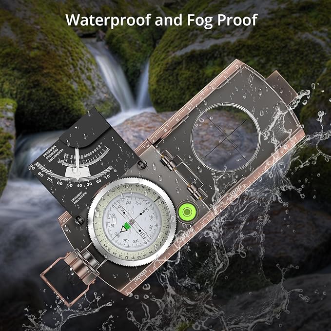 - Military Compass with Inclinometer and Graduated Scale: Anbte professional compass is made of high quality zinc alloy metal body, military construction, waterproof and shockproof. Can be used in extreme weather. Built-in inclinometer and side with scale, can measure the slope and height