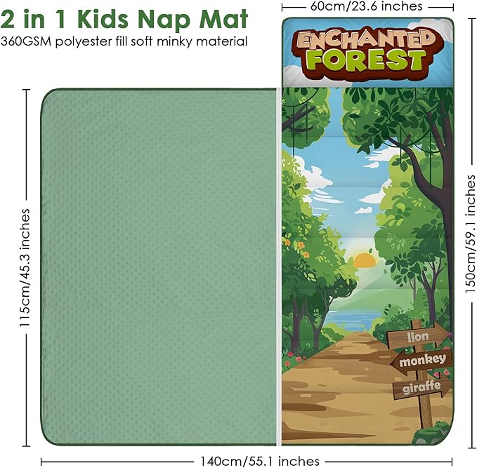 - 【2-In-1 Detachable Design】 Featuring a convenient zipper,the blanket is not only a reliable warm cover when used as a kids nap mat but also the detachable blanket can be used alone anywhere,keeping warmth for your kids.