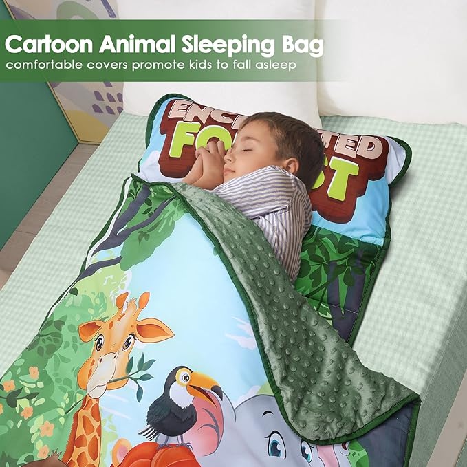 Kids Sleeping Bag Nap Mat with Removable Pillow and Blanket,Extra Thick Large 2 in 1 Slumber Bags for Boys Girls,Toddler Nap Mat for Preschool Daycare Travel Camping