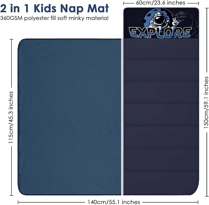 - 【2-In-1 Detachable Design】 Featuring a convenient zipper,the blanket is not only a reliable warm cover when used as a kids nap mat but also the detachable blanket can be used alone anywhere,keeping warmth for your kids.