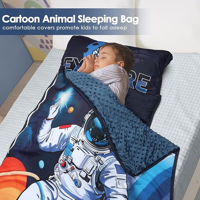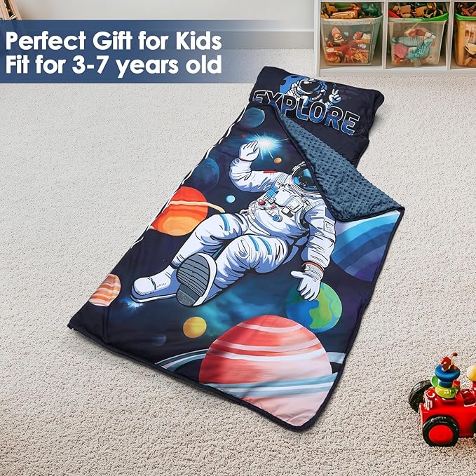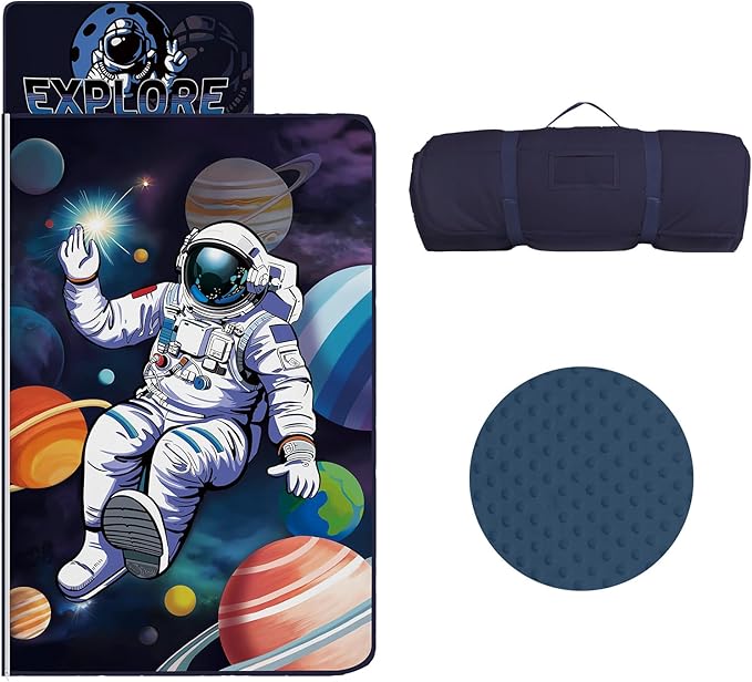 Kids Sleeping Bag Nap Mat with Removable Pillow and Blanket,Extra Thick Large 2 in 1 Slumber Bags for Boys Girls,Toddler Nap Mat for Preschool Daycare Travel Camping