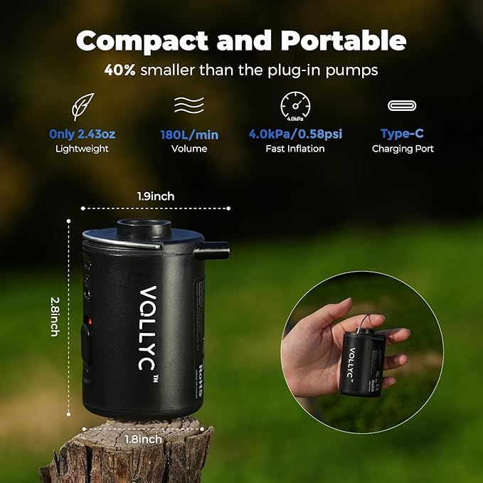 Portable Air Pump for Inflatables, VOLLYC Electric Mini Air Mattress Pump with USB Rechargeable to Inflate/Deflate - Perfect for Camping, Pool Floats, Air Mattress, Vacuum Storage Bags