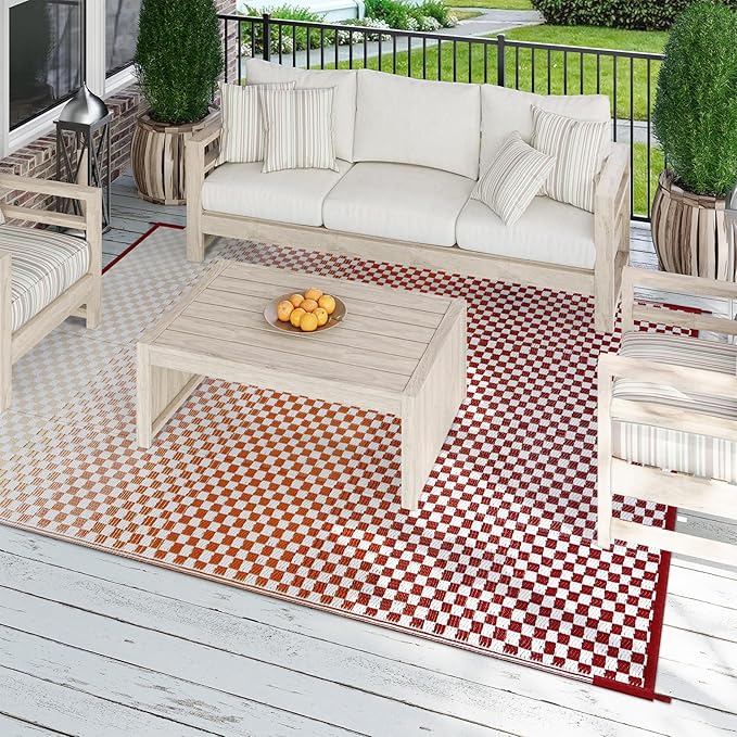 - [Eye-Catching Reversible Mat] Our reversible patio rugs feature a special gradient design. The grid structure produces color nuances that give a sense of space and movement, bringing visual appeal to your area while offering more possibilities for pairing