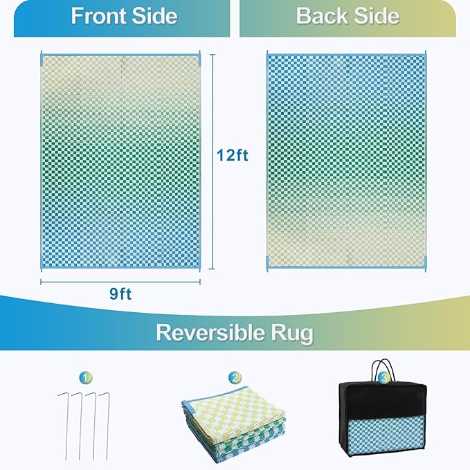 - [Eye-Catching Reversible Mat] Our reversible patio rugs feature a special gradient design. The grid structure produces color nuances that give a sense of space and movement, bringing visual appeal to your area while offering more possibilities for pairing